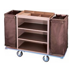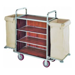 Τρόλεϊ καμαριέρας με 3 ράφια & 2 σάκους, INOX + ξύλο MDF