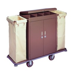 Τρόλεϊ καμαριέρας μεταλλικό με 2 σάκους, πόρτες με κλειδαριά, ράφια και θήκες μικροαντικειμένων. Τα ..
